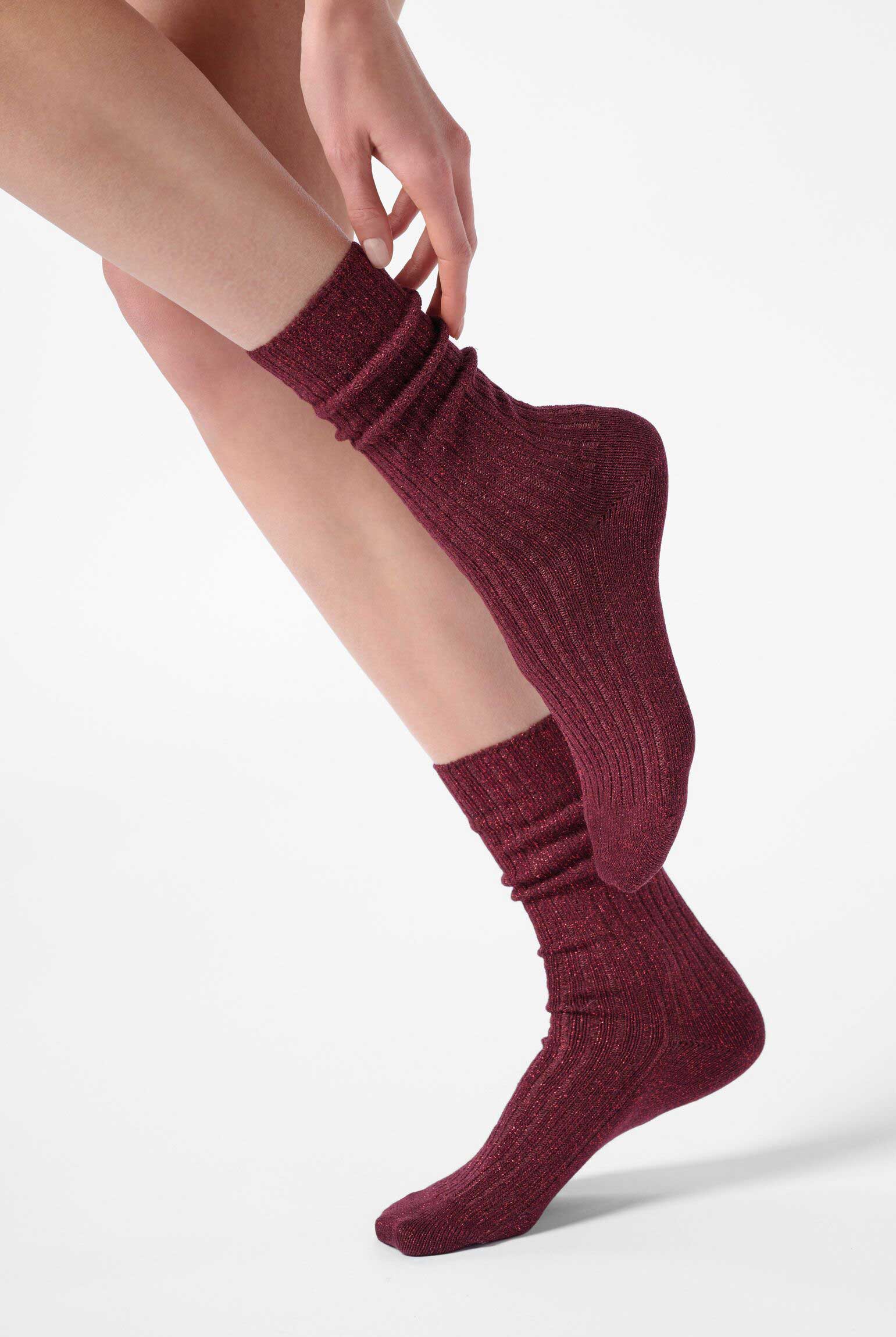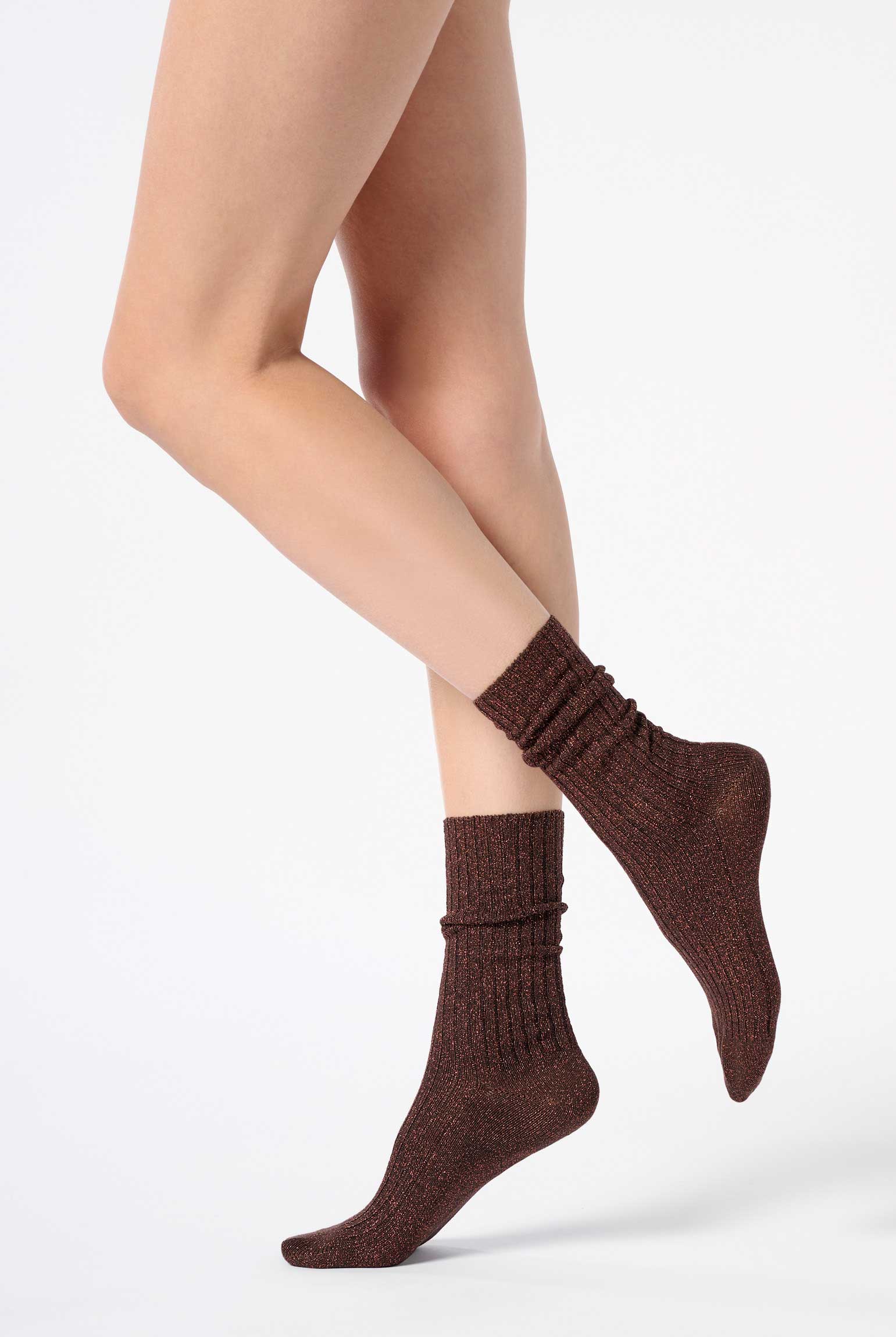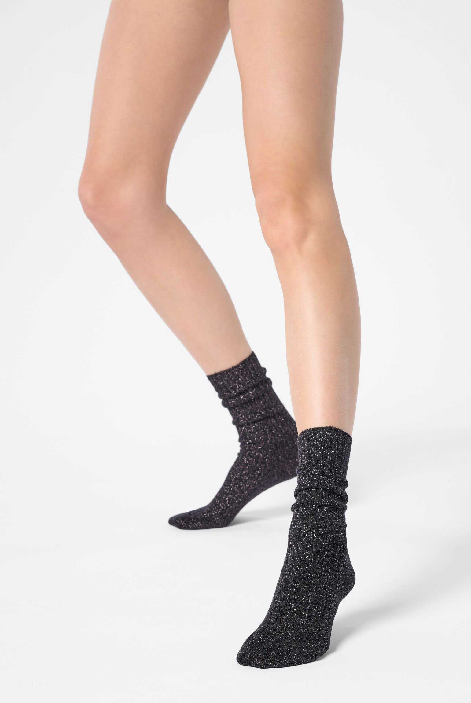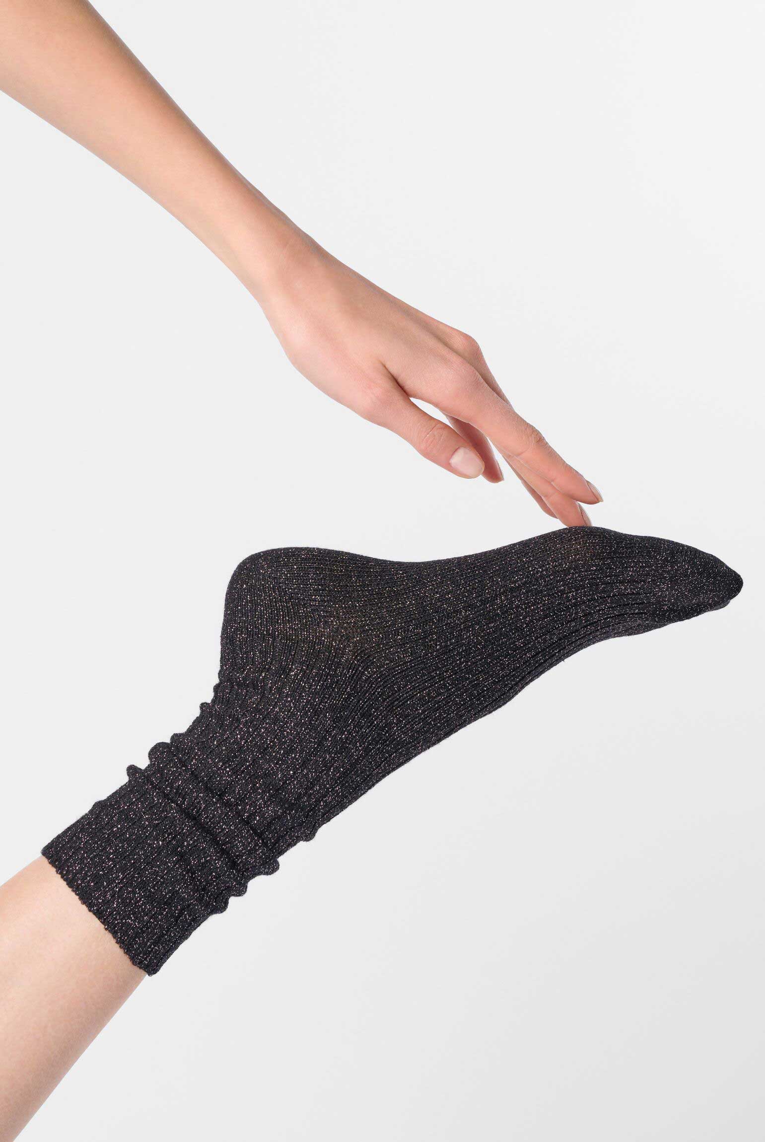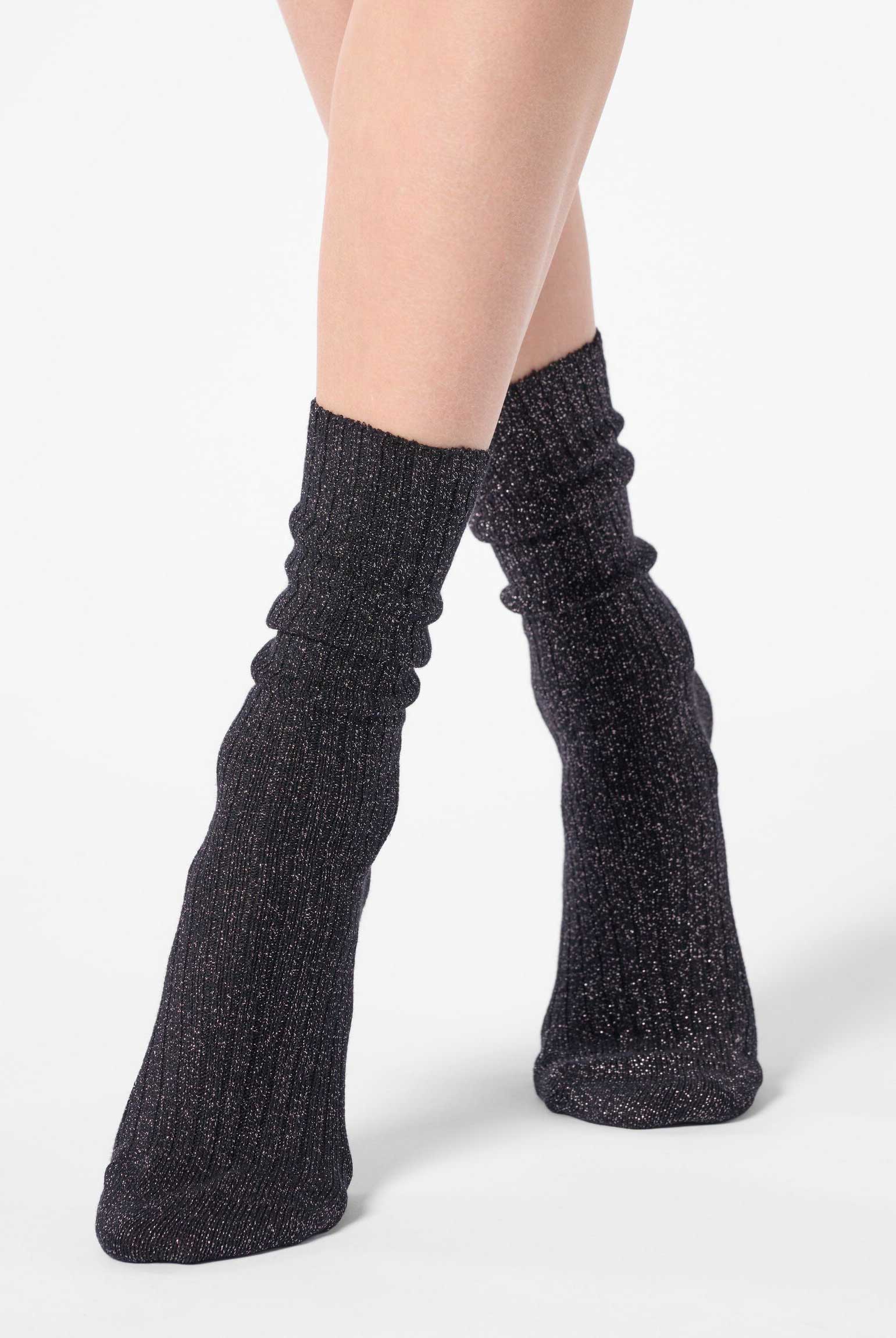 Oroblu Diamond Rib Knit Cotton & Lame` Bootie Socks