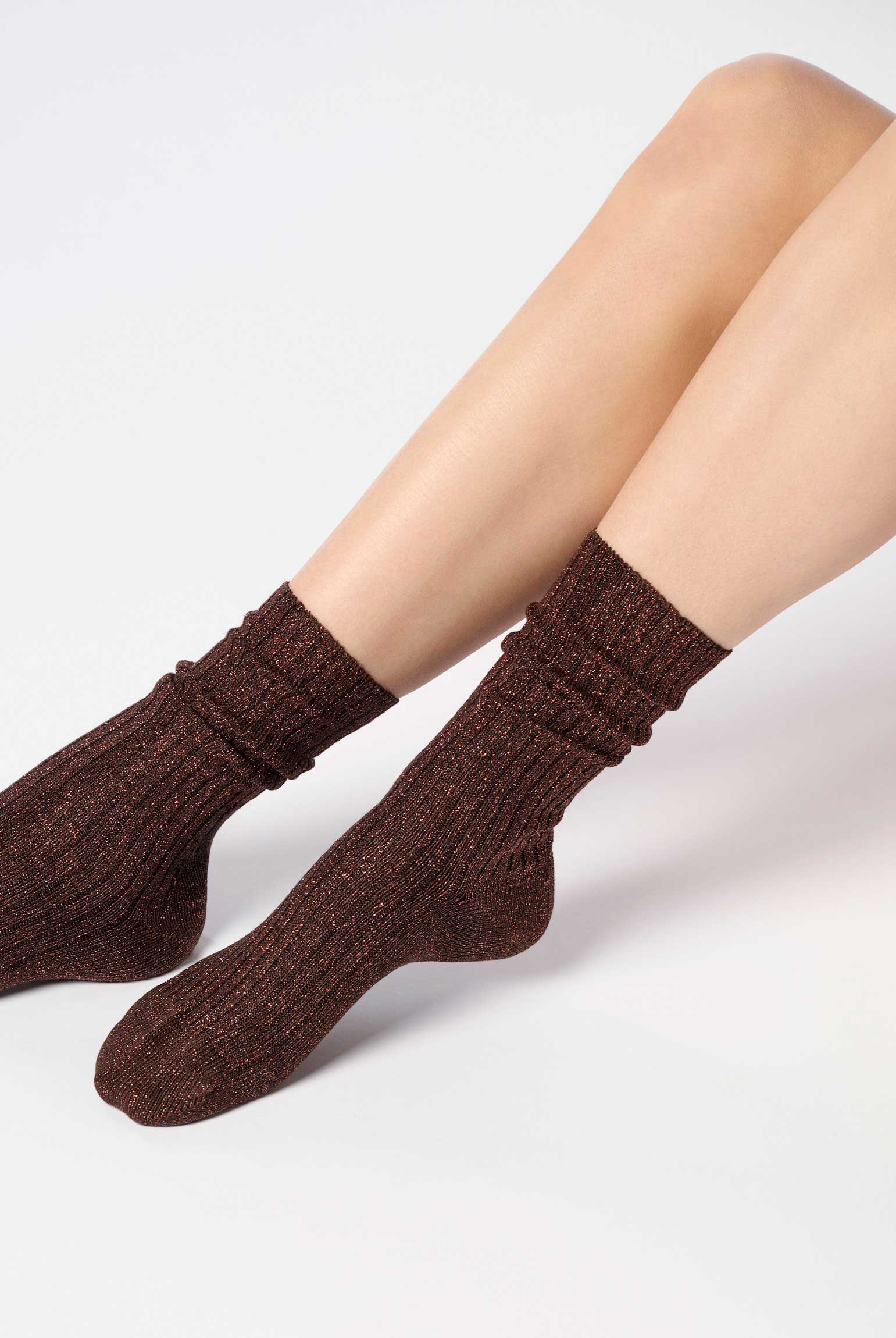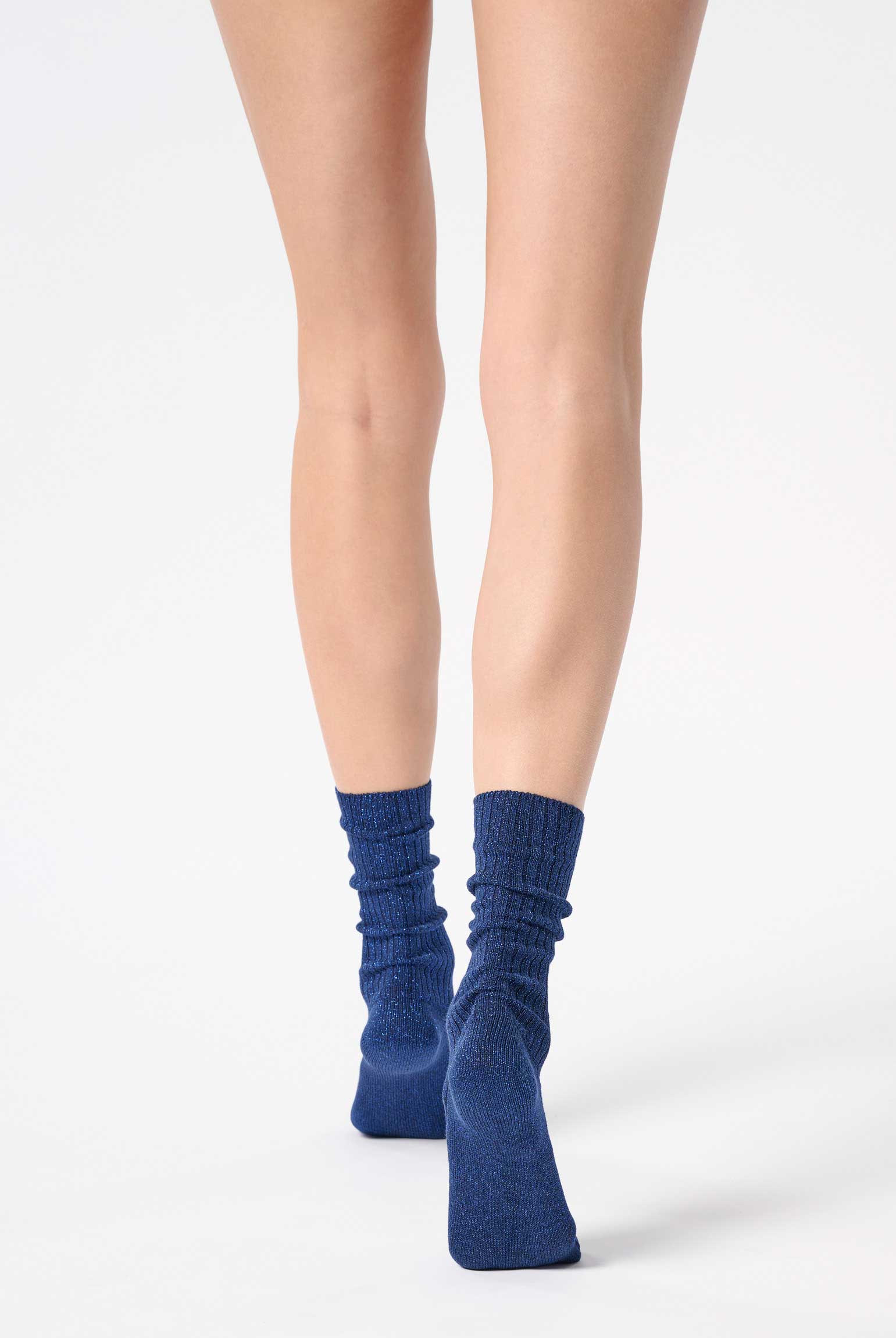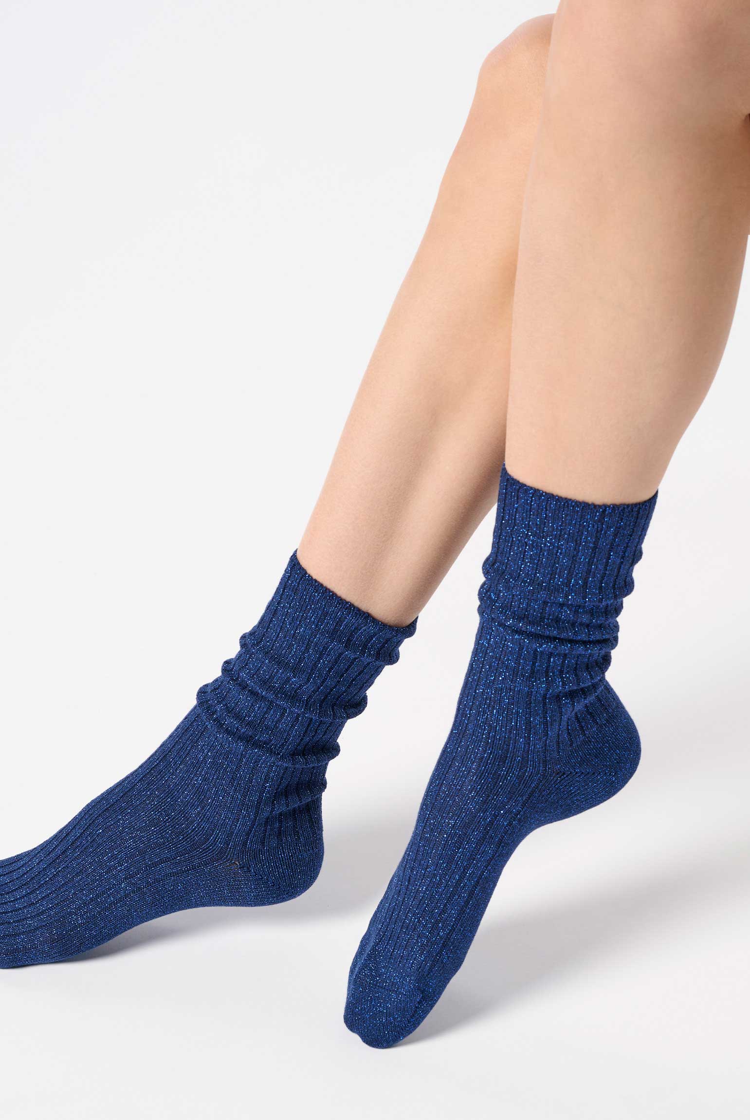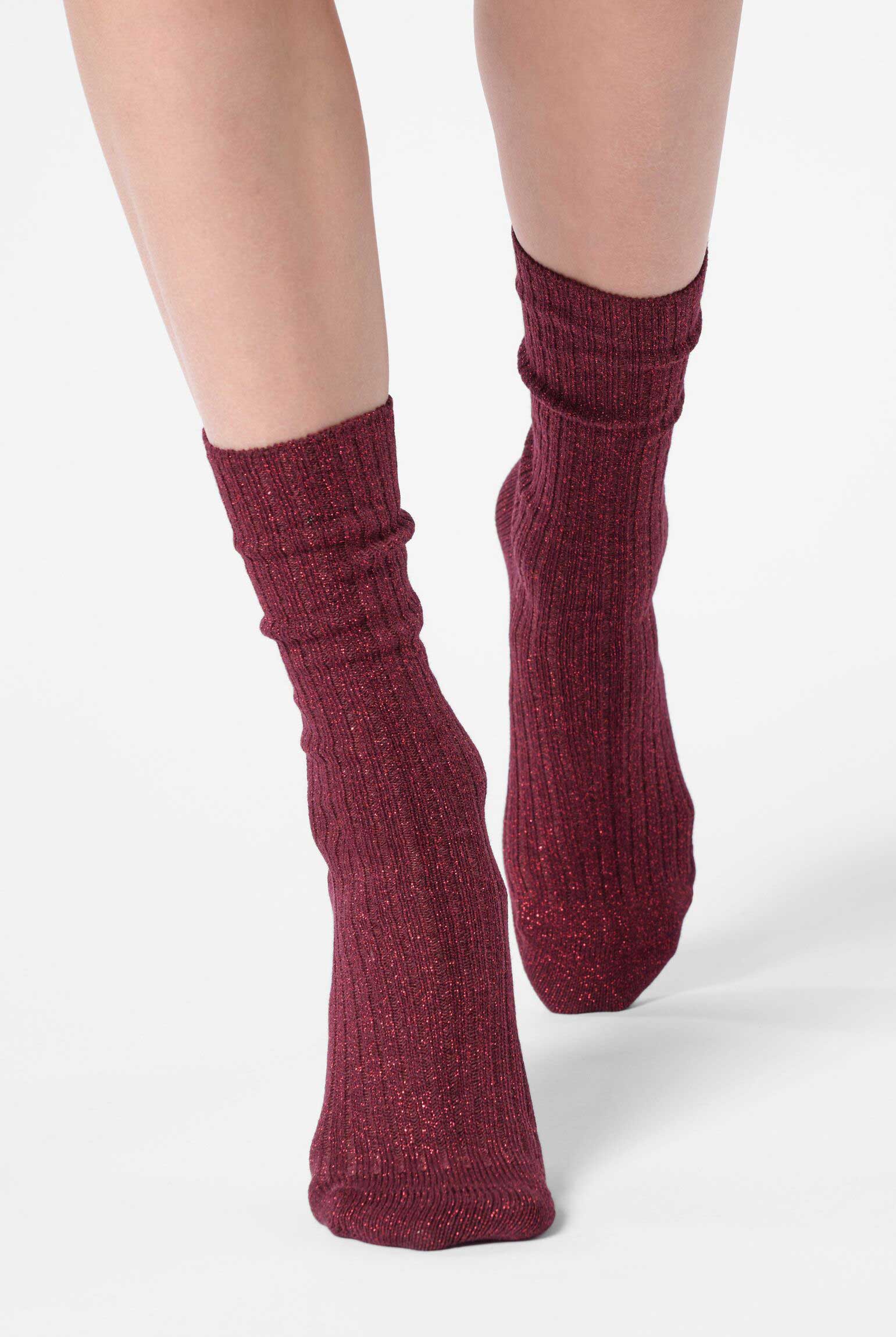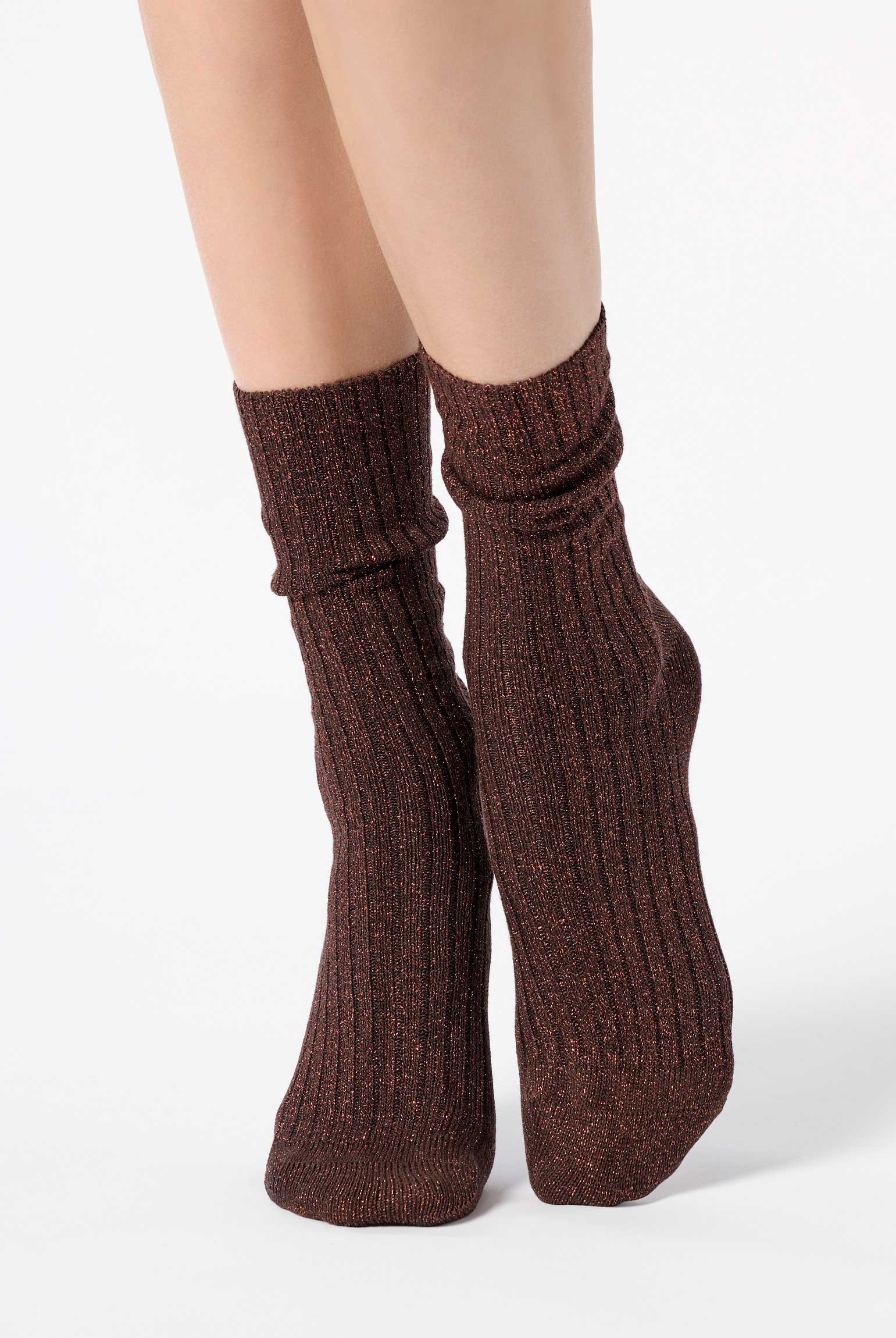 Oroblu Diamond Rib Knit Cotton & Lame` Bootie Socks