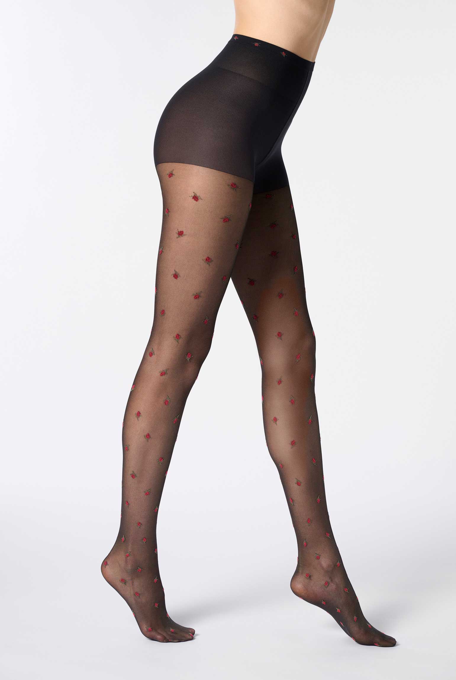 Oroblu Floral Fancy Rose Motifs Semi Sheer Tights
