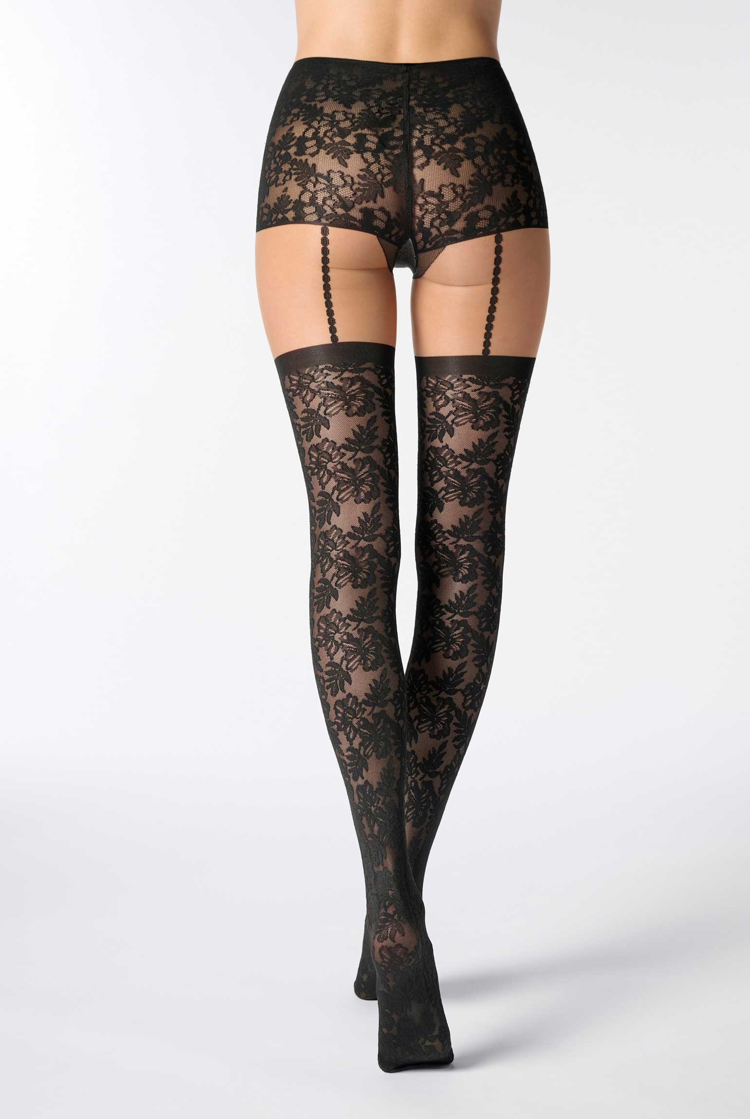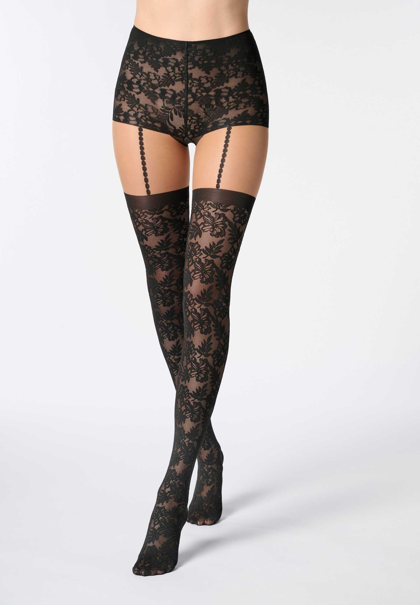 Oroblù Desire tights are a standout piece from the latest Oroblù fashion collection, designed for those who appreciate refined sensuality and timeless style. Inspired by classic vintage stockings, these mock suspender tights create the illusion of stockings held up by suspenders, offering an elegant yet daring look that instantly elevates any outfit. The design features a rich floral lace pattern that adds depth and sophistication, complemented by a striking faux suspender strap that wraps elegantly around the culottes. This detail draws the eye and enhances the silhouette, combining old-school charm with contemporary allure. The lace-effect fabric delivers a luxurious finish while remaining wearable and flattering. Crafted with comfort in mind, Oroblù Desire tights include a well-designed gusset for a smooth, secure fit that feels comfortable throughout the day or evening. Sensual yet refined, these suspender-style tights are ideal for creating sophisticated, feminine looks, whether styled for a special occasion or to add a bold, elegant touch to everyday wear. Composition: 92% Polyamide & 8% elastane.